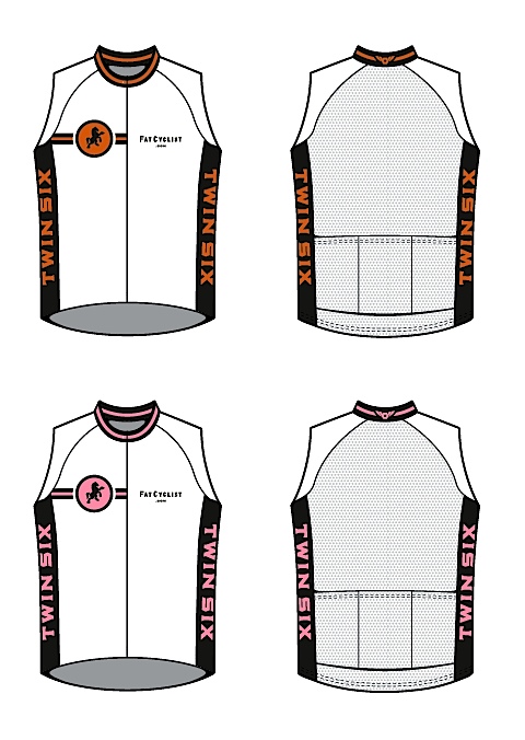 This year, bib shorts will be available in both the Fat Cyclist (orange) version and the Team Fatty (pink) version, in both men’s and women’s cuts.