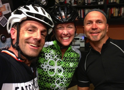 We had the trail all to ourselves, as you might expect, then rode up the road back to Kenny and Heather’s house. Our first lap was in the bag.