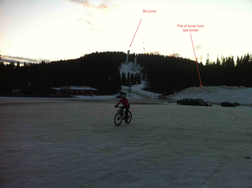 I should admit now that I am a stronger swimmer than cyclist (most of my riding falls in the “commuting” category), and that the weather in Trondheim in November is quite unpredictable. I had a route in mind: an out-and-back route from my apartment to the ski jump at Granåsen. It’s the flattest route I could think of, has a separated multi-use path, and would allow my support crew to be at home writing his thesis for most of the day. The big question when I signed up was: which bike and which tires would I use?